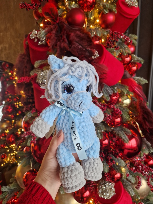 Are you looking for the perfect, slightly smaller, personalized cuddle companion for your child? This handmade crocheted light-blue horse is created to offer soft and safe comfort, while also becoming a meaningful keepsake.