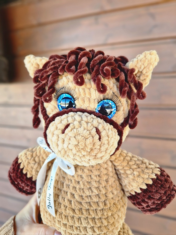 See on palju enamat kui lihtsalt mänguasi. See on pehme kallistus, lapse esimene sõber ja eriline mälestusese, mis jääb perele armsaks ka aastaid hiljem. Hobune on valminud kvaliteetsest ja mõnusalt pehmest plüüslõngast, mis teeb ta eriti nauditavaks nii katsuda kui ka kaisutada. Turvasilmad ning allergiavaba materjal muudavad selle ideaalseks mängukaaslaseks ka kõige pisematele, just selliseks, mida on hea süles hoida ja endaga igale poole kaasa võtta.