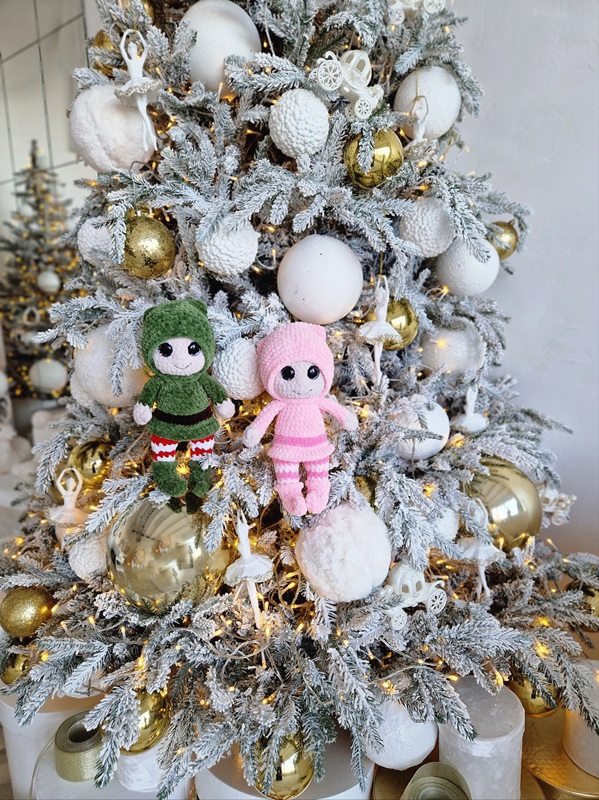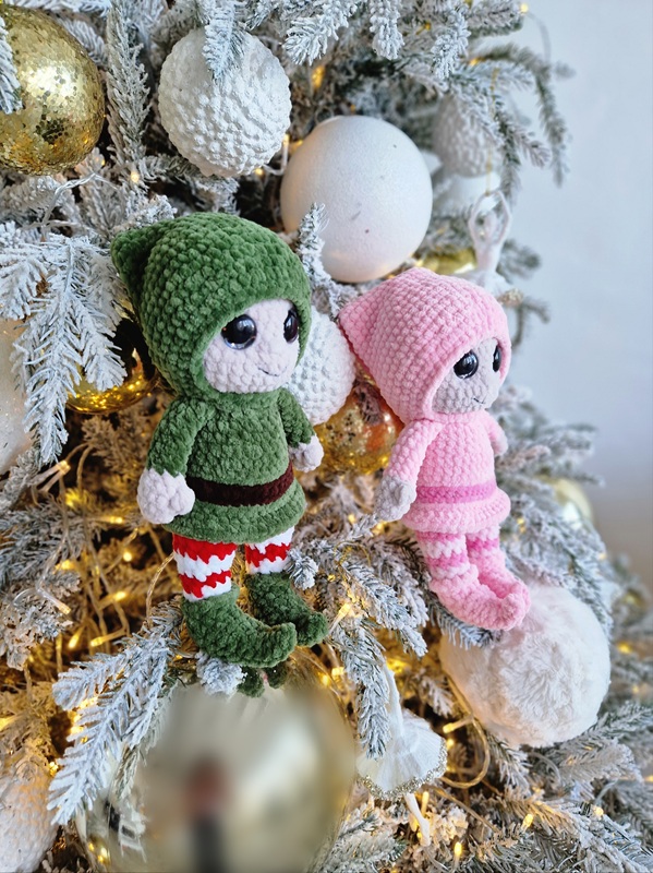 Nende väikesed käed ja jalad on heegeldatud pehmest, mõnusast lõngast, mis muudab nad täiuslikuks kaaslaseks nii lastele kui ka suurematele jõulusõpradele.