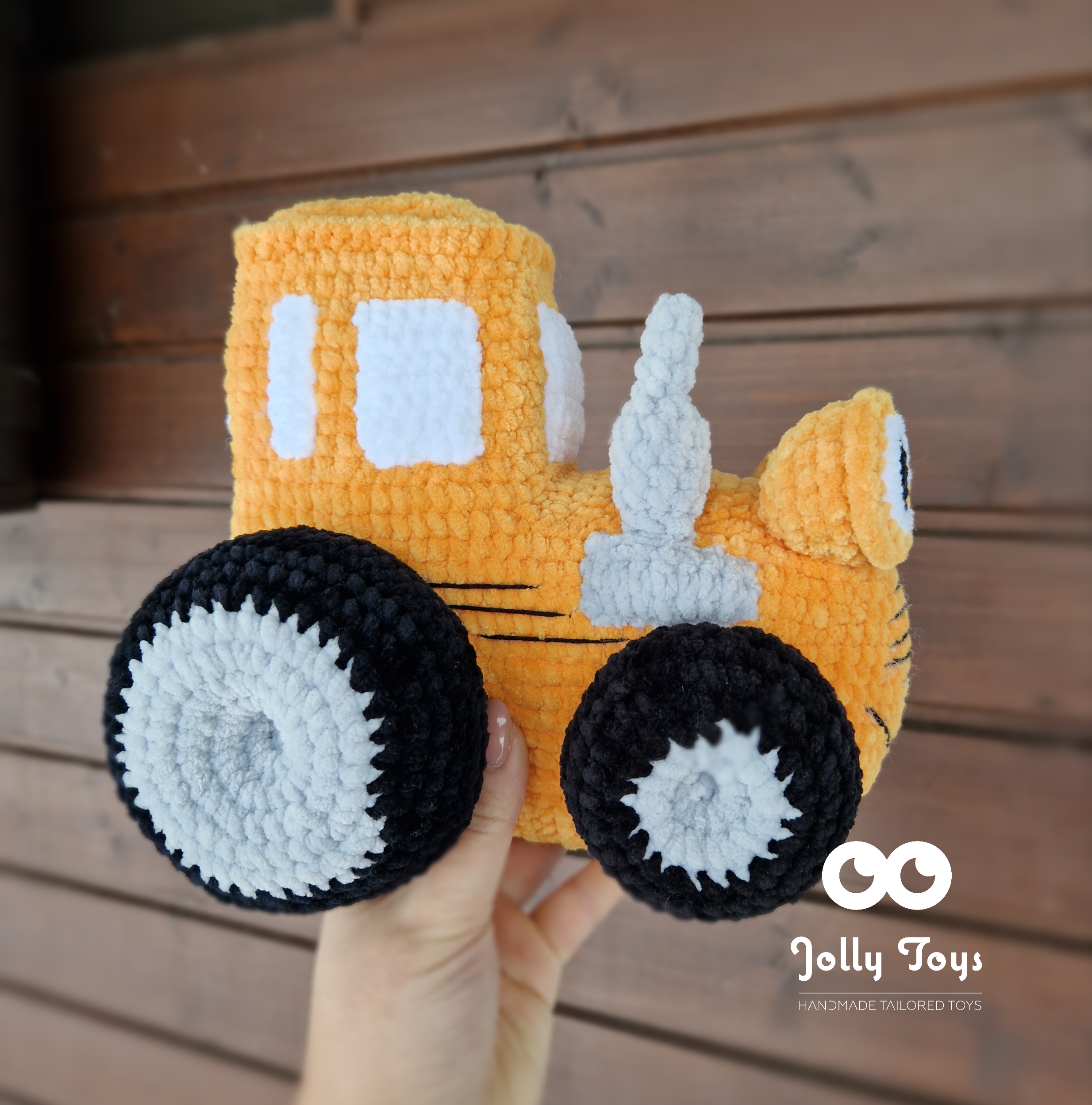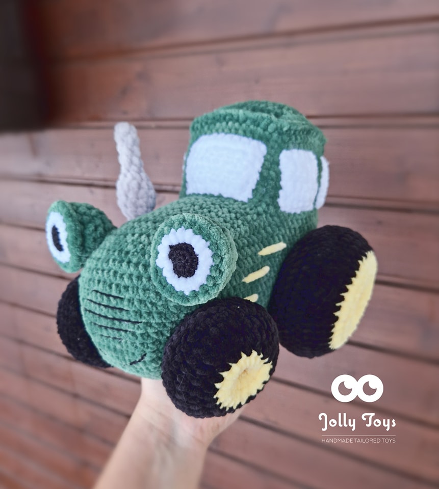 Vahva pehme traktor on heegeldatud kvaliteetsest hüpoallergeenilisest lõngast, mis on väga pehme. Mõõdud: 25cmx20cm. Sobib nii mängimiseks kui kaisutamiseks 🙂
