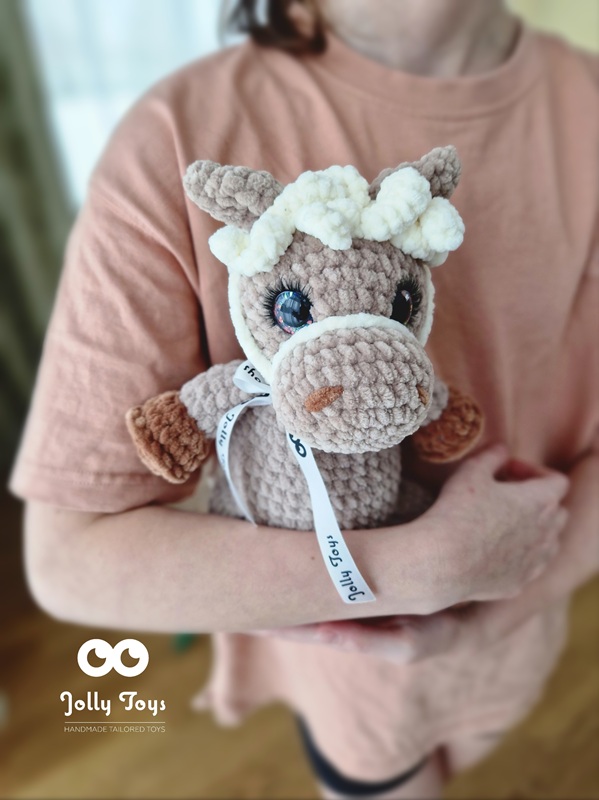 Suurus: umbes 30 cm (aga kuna käsitööhobused elavad oma reeglite järgi, võib ta mõne millimeetri võrra suurem või väiksem olla). Värv: soe pruun koorekarva lakaga – nagu karamelline cappuccino! Unikaalsus: iga hobune on ainulaadne – täpselt nagu tema tulevane omanik!