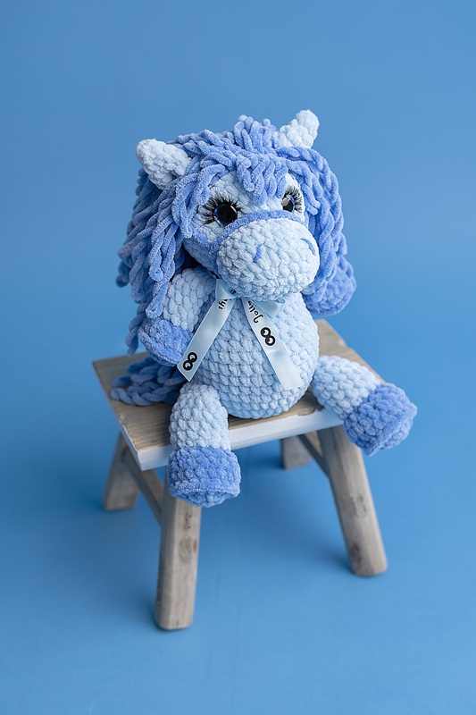 Sinine heegeldatud hobune-katsikukingitus 2026 hobuse aastal
